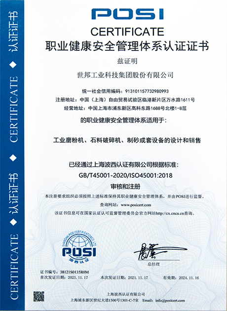 職業(yè)健康安全管理體系認(rèn)證證書