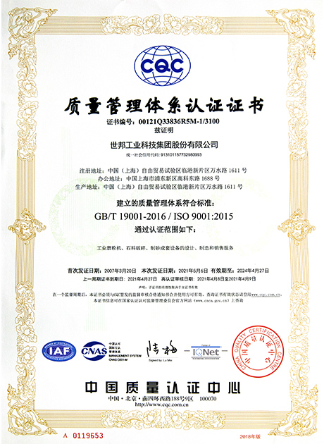 質(zhì)量管理體系認(rèn)證證書