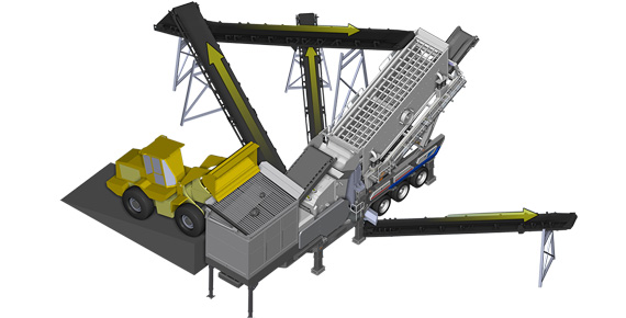 實(shí)際生產(chǎn)作業(yè)中,現(xiàn)場(chǎng)存在大量無需粗破的中原礦石土層,如果不加以區(qū)分,不僅增加粗破的處理量,還會(huì)導(dǎo)致更大功耗;而獨(dú)立作業(yè)組合移動(dòng)站無需增加設(shè)備和成本,即可對(duì)這些物料進(jìn)行預(yù)篩分,降低粗破處理量、增大產(chǎn)能。