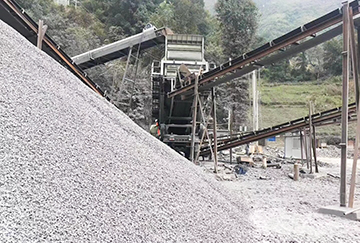 石灰石原料經(jīng)TSW1139棒條給料機(jī)均勻給料,蓖條預(yù)先篩分除土,石料經(jīng)過PE750×1060顎破破碎之后通過皮帶機(jī)先上KF1315-2反擊破移動站的3Y2160振動篩篩分再進(jìn)入PFW1315Ш三腔反擊破破碎(實(shí)現(xiàn)先篩后破,提高生產(chǎn)線效率),反擊破出料皮帶機(jī)打到顎破出料的皮帶機(jī)上,共用一根上篩皮帶機(jī),再次上振動篩進(jìn)行篩分,出來0-5-16-31.5mm三種成品料。
