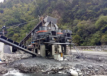 河卵石原料進(jìn)入歐版液壓顎破PEW760進(jìn)行粗破,然后經(jīng)皮帶機(jī)進(jìn)入單缸液壓圓錐破HST250進(jìn)行二次破碎,然后進(jìn)入調(diào)節(jié)料倉(cāng),經(jīng)皮帶機(jī)把小于40MM的進(jìn)入沖擊破VSI5X-1145進(jìn)行制砂,成品0-5MM精品砂,目前質(zhì)量和價(jià)格完全媲美優(yōu)質(zhì)天然河沙。