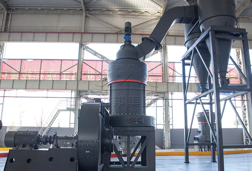 大塊狀物料經(jīng)顎式(錘式)破碎機(jī)破碎到所需粒度后,由提升機(jī)將物料送至儲(chǔ)料斗,再經(jīng)電磁振動(dòng)給料機(jī)將物料均勻定量連續(xù)地送入MB5X懸輥磨主機(jī)磨室內(nèi)進(jìn)行研磨。粉磨后的物料被風(fēng)機(jī)氣流送入選粉機(jī)進(jìn)行分級(jí),在選粉機(jī)葉輪的作用下,不符合細(xì)度要求的物料落入磨室內(nèi)重新碾磨,符合細(xì)度要求的物料則隨氣流經(jīng)管道進(jìn)入旋風(fēng)集粉器內(nèi),進(jìn)行分離收集,經(jīng)排料裝置排出即為成品粉體。分離后的氣流通過旋風(fēng)集粉器上端回風(fēng)管進(jìn)入風(fēng)機(jī)。該系統(tǒng)屬于閉路循環(huán)系統(tǒng),并在正負(fù)壓狀態(tài)下運(yùn)行。
