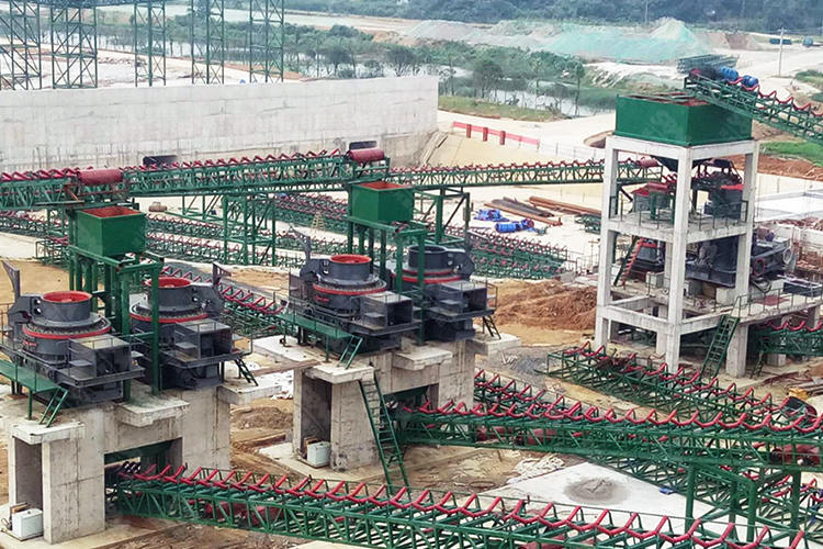 將物料堆均勻地運(yùn)到圓錐破碎機(jī)細(xì)碎。細(xì)碎后,用圓振動篩篩篩分;粒級合格材沙礫由洗砂機(jī)清洗,用作成品。