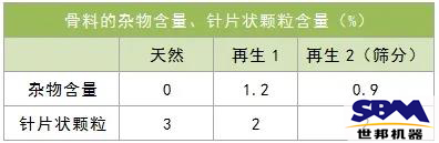 再生骨料與天然骨料針片狀顆粒含量基本相當(dāng),雜物含量等有著明顯區(qū)別: