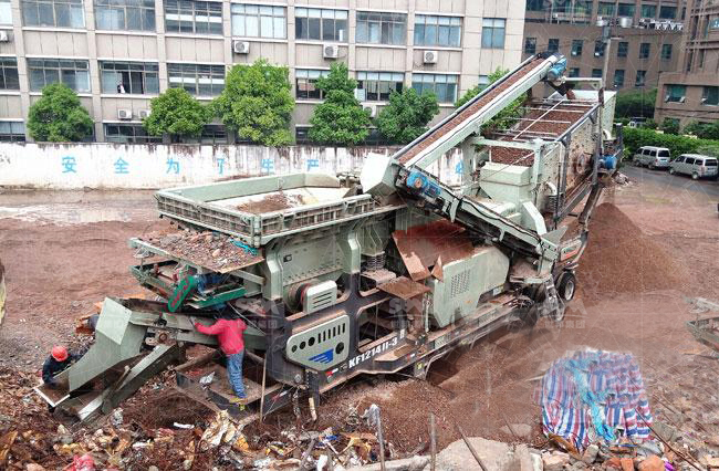 建筑垃圾的處理過(guò)程大概為:分揀—除鐵—給料—粗碎—中碎—篩分;所需設(shè)備有除鐵器、給料機(jī)、顎式破碎機(jī)、反擊破碎機(jī)、振動(dòng)篩以及運(yùn)輸物料的輸送帶;為了配合不同用戶的實(shí)際情況與需求,現(xiàn)分為固定式與移動(dòng)式兩種。