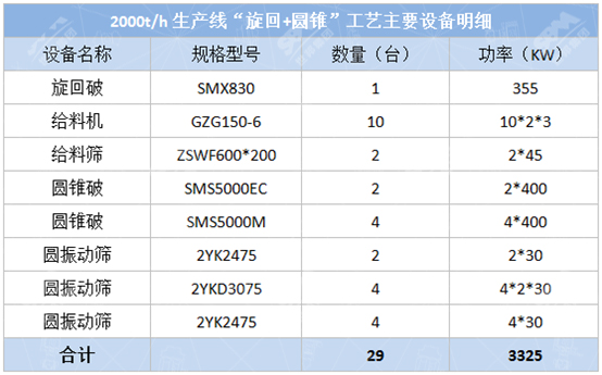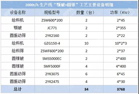 2、“顎破+圓錐”工藝流程圖及主要設(shè)備明細(xì)