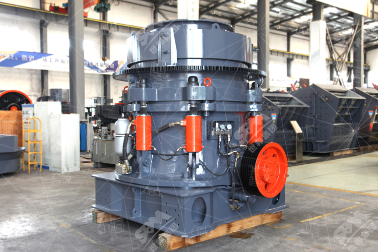 石料由振動給料機均勻地送到顎式破碎機進行粗破,粗破后的物料由膠帶輸送機送入圓錐式破碎機進行二級破碎,細碎后的物料被輸送到振動篩進行篩分,達到成品粒度要求的物料被送入洗砂機清洗,清洗后由成品輸送帶輸出即為成品;未達到成品粒度要求的物料從振動篩返回圓錐破中重新加工,形成閉路多次循環(huán)。