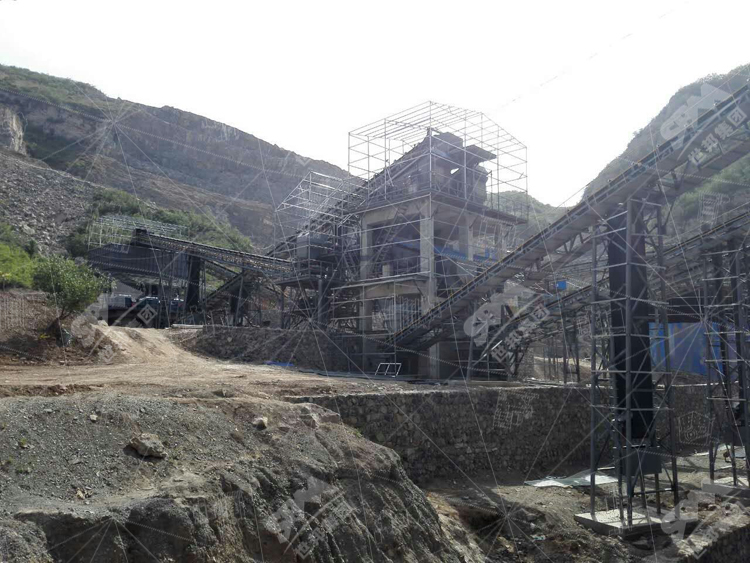 石料由振動給料機均勻送至顎式破碎機進行粗碎,粗碎后的物料由帶式輸送機送至制砂機進行進一步粉碎,細碎后的物料送至振動篩進行篩分,符合成品粒度要求的物料送至洗砂機進行清洗,清洗后的物料由成品輸送帶輸出,得到成品;