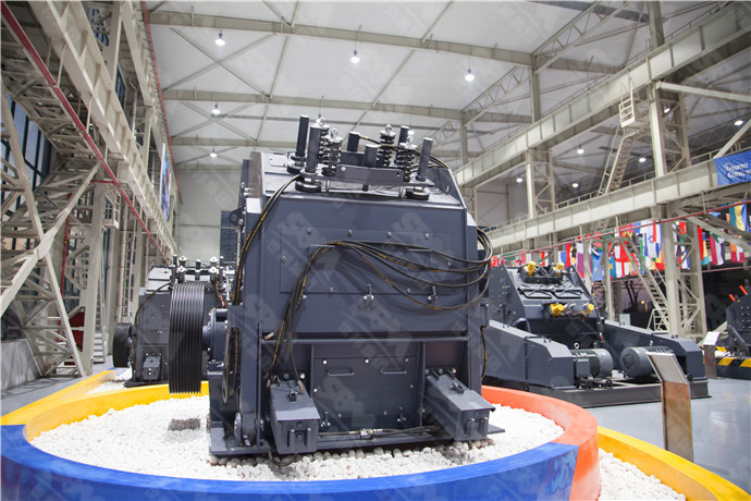褐煤破碎機是一種利用沖擊能來破碎褐煤的破碎機械。當(dāng)褐煤進入板錘作用區(qū)時,受到板錘的高速沖擊而破碎,并被拋向安裝在轉(zhuǎn)子上方的反擊裝置上再次破碎,然后又從反擊破襯板上彈回到板錘作用區(qū)重新破碎。此過程重復(fù)進行,直到褐煤被破碎至所需粒度,由機器下部排出為止。調(diào)整反擊架與轉(zhuǎn)子架之間的間隙可達到改變褐煤粒度和褐煤形狀的目的。本機在反擊板后采用彈簧保險裝置,當(dāng)非破碎物進入破碎腔后,前后反擊架后退,非破碎物從機內(nèi)排出。