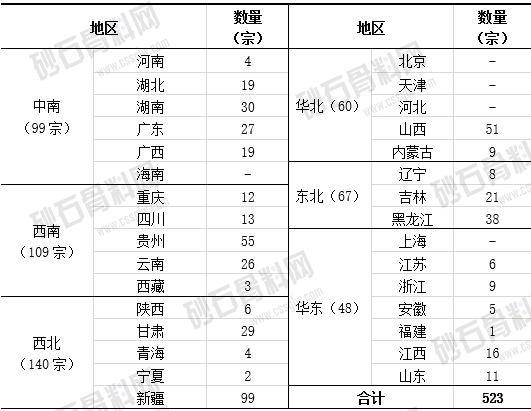 ①2023年上半年,全國共成功出讓砂石類采礦權(quán)523宗,較2022年同期上漲13.2%。礦權(quán)出讓主要集中在西北、西南及中南等區(qū)域,新疆出讓礦權(quán)數(shù)量占各省份首位。