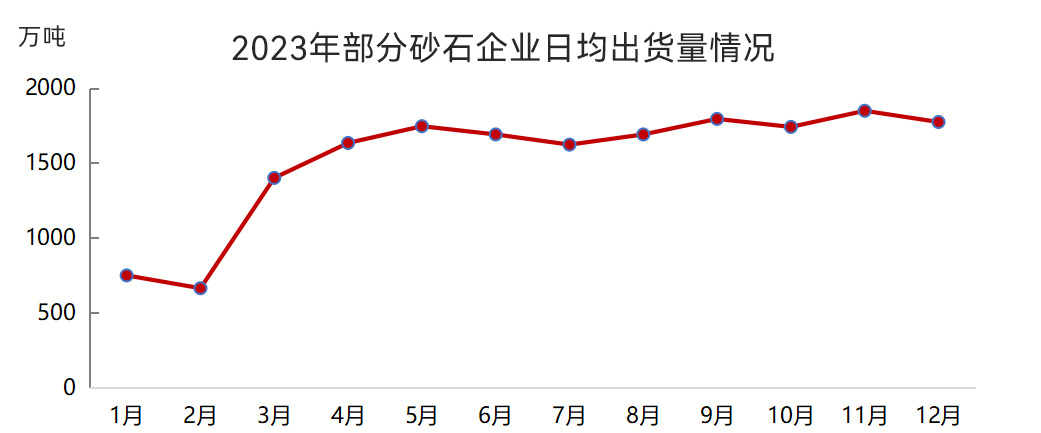 根據(jù)對(duì)重點(diǎn)砂石企業(yè)監(jiān)測(cè)顯示,1月、2月,因?yàn)榇汗?jié)假期,砂石礦山企業(yè)停工等因素的影響,重點(diǎn)砂石企業(yè)日均出貨量低位運(yùn)行。