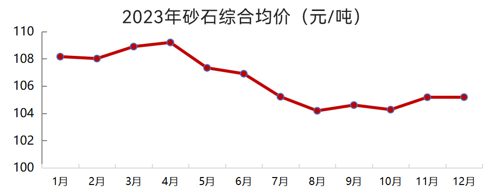 據(jù)中國(guó)砂石協(xié)會(huì)大數(shù)據(jù)中心統(tǒng)計(jì),2023年12月,我國(guó)砂石綜合均價(jià)為105元/噸,較2023年1月下降2.7%。