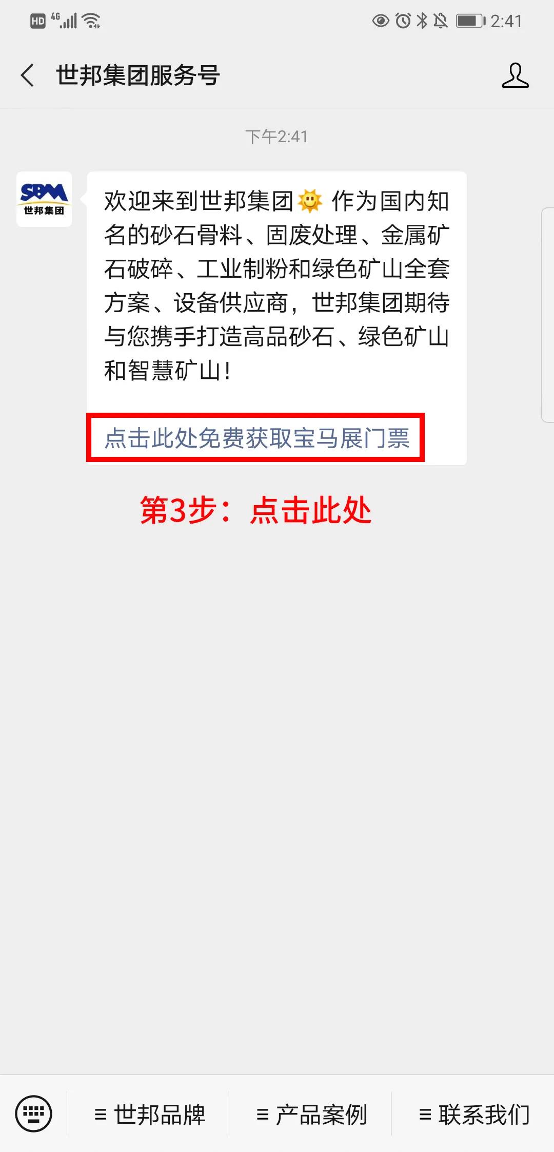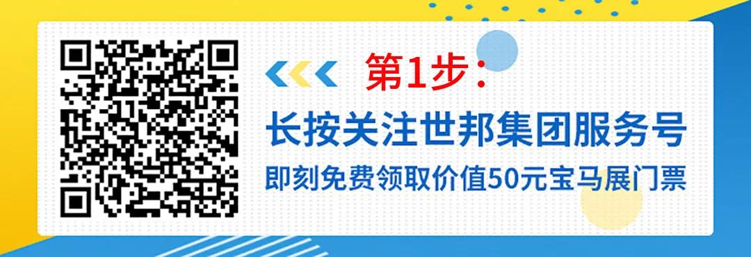 備注:如您已關(guān)注世邦集團(tuán)服務(wù)號(hào),可在聊天框直接輸入關(guān)鍵詞【寶馬展門票】,登記后,同樣可以免費(fèi)獲取價(jià)值50元寶馬展門票~快去試試吧~