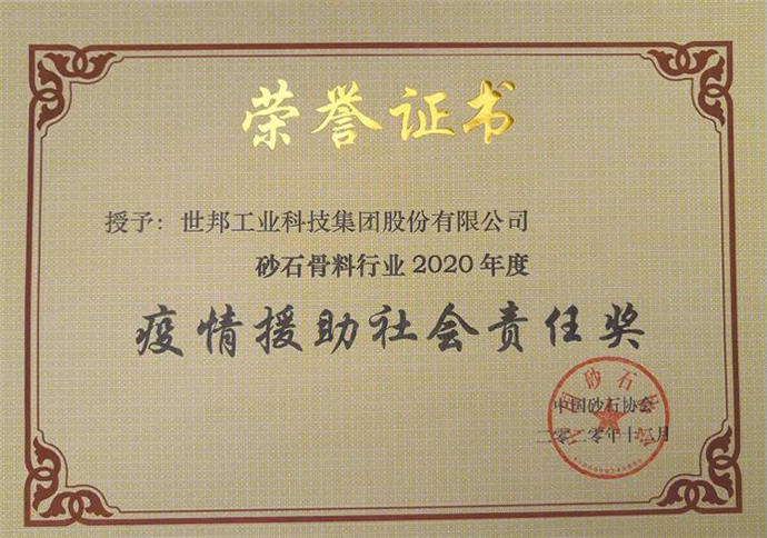 世邦工業(yè)科技集團(tuán)股份有限公司榮獲“創(chuàng)新企業(yè)”“卓越企業(yè)”“企業(yè)文化建設(shè)單位”“疫情援助社會(huì)責(zé)任獎(jiǎng)”。