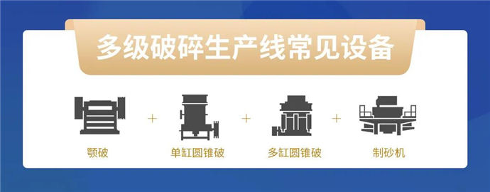 高品質(zhì)砂石骨料生產(chǎn)線通常由頭破(粗碎)、中碎、細碎、整形制砂(若有制砂需求)多級破碎構(gòu)成,固守骨料的破碎規(guī)律,且不同階段工藝講究配套不同的設(shè)備,如中碎、細碎階段會選擇單缸液壓圓錐破、多缸液壓圓錐破等來處理(多缸液壓圓錐破主要出成品料,粒型優(yōu))。這樣生產(chǎn)的成品骨料不僅強度高,而且粒型更符合相關(guān)國家標(biāo)準(zhǔn)。高品質(zhì)骨料破碎生產(chǎn)線常見設(shè)備配置見下圖: