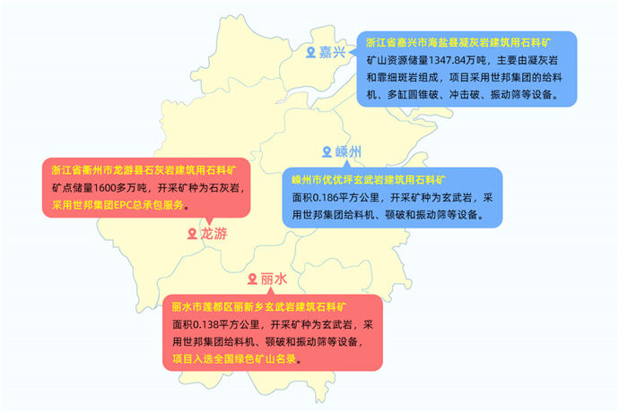 海新礦業(yè)采用世邦的給料機(jī)、多缸圓錐破、沖擊破、篩分等設(shè)備,項(xiàng)目投產(chǎn)后將為浙北地區(qū)交通、建筑等工程提供優(yōu)質(zhì)的砂石材料保障。