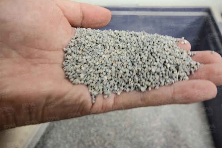 生產(chǎn)線正式投產(chǎn)后,經(jīng)客戶實(shí)驗(yàn)室化驗(yàn),世邦VU塔樓式制砂系統(tǒng)做出的機(jī)制砂符合并優(yōu)于客戶砂漿站用砂的標(biāo)準(zhǔn)。生產(chǎn)的機(jī)制砂粒型佳、級(jí)配連續(xù)穩(wěn)定,制作砂漿效果非常好。