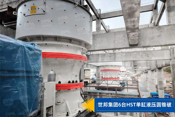 該項目主要破碎物料為片麻巖,設計規(guī)模年產3000萬噸。項目在核心設備的選擇上標準要求更高,以中細碎破碎機設備為例,采用了6臺世邦集團HST液壓圓錐破,6臺HP500和12臺山特CH660 ,配合整條生產線將物料破碎處理成為0-4.75mm、5-10mm,10-16mm,16-26.5mm規(guī)格的優(yōu)質骨料。
