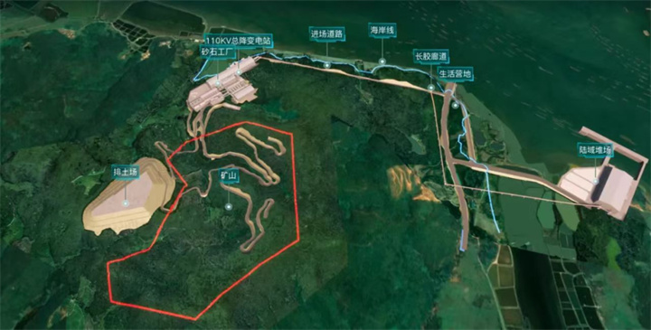 中電建陽西項目是陽江地區(qū)頭等綠色礦山建材項目,是集開采、運輸、加工和銷售一體的綠色建材基地,也是“建設、生產、運營、修復”全產業(yè)鏈一體化項目。項目建設規(guī)模大,資源儲量約2億噸,建設總投資約52億元,主要由礦山開采、砂石工廠、長距離運輸廊道三大部分組成,配套重量級港口碼頭。此外,項目地理位置優(yōu)越,地處大灣區(qū)、北部灣城市群和海南自貿港三大國家戰(zhàn)略的交匯地帶,西可到茂名、湛江,東可達江門、珠海,項目投產后或可通過海運輻射粵港澳大灣區(qū)主要中心城市及東南亞市場。
