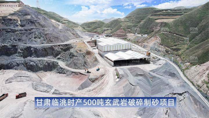 甘肅臨洮,礦區(qū)巖石以玄武巖為主,經(jīng)檢測,石料壓碎值達到13%,單軸抗壓強度為95MPa,適用于高強、高性能混凝土和道路、隧道、橋梁等建筑工程用材。基于原礦石特性和成品高品質(zhì)骨料需求,項目對破碎工藝方案和破碎設(shè)備提出了嚴(yán)格要求。