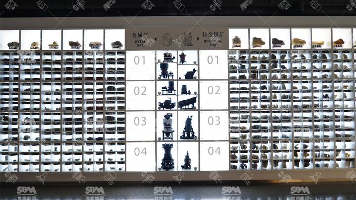 進(jìn)入此廳,你一定會(huì)震撼于墻上展示的1500余種不同規(guī)格的物料樣品,它們均來(lái)自世邦全球各地不同的生產(chǎn)現(xiàn)場(chǎng),且是由我們自己的設(shè)備生產(chǎn)出來(lái)的高品質(zhì)成品料。此外,常見(jiàn)礦物的加工流程、國(guó)內(nèi)外經(jīng)典工程案例、陳列的新一代機(jī)器模型等同樣值得您駐足品味!