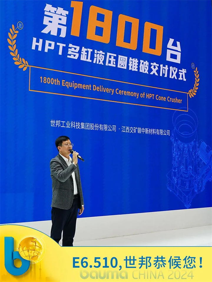 11月27日,值此上海寶馬展舉辦之際,世邦HPT多缸液壓圓錐破迎來了第1800臺的交付儀式。設(shè)備將遠赴江西客戶現(xiàn)場,助力客戶項目生產(chǎn)。