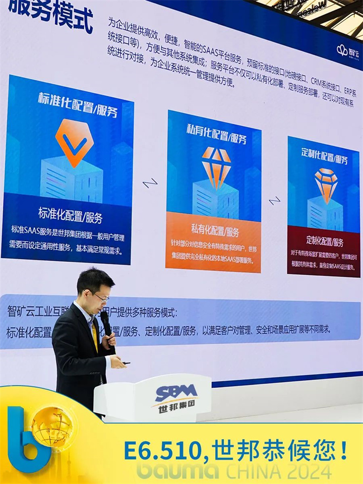 世邦智礦云平臺是以客戶為中心,打造的專屬于礦物破碎篩分領(lǐng)域的工業(yè)互聯(lián)網(wǎng)云平臺,本次寶馬展,智礦云平臺2.0版本正式發(fā)布。