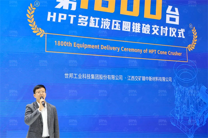 2024年,世邦集團(tuán)的拳頭產(chǎn)品——HPT多缸圓錐破碎機(jī),迎來(lái)了上市10周年的榮耀時(shí)刻。借2024年上海寶馬展行業(yè)盛會(huì)舉辦之機(jī),世邦集團(tuán)舉辦了第1800臺(tái)套設(shè)備的交付儀式。