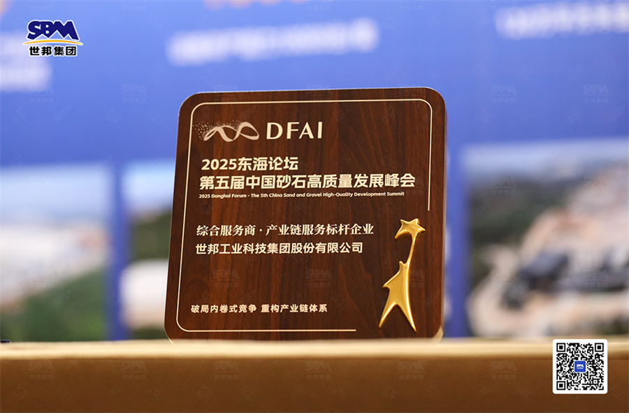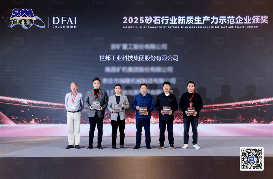 在這場思想碰撞、技術交融的行業(yè)盛宴中,世邦集團以贊助單位的身份深度參與,并在裝備展示區(qū)設立展位,以創(chuàng)新技術實力與綜合服務能力成為全場焦點,更在同期舉辦的 “2025年砂石行業(yè)新質(zhì)生產(chǎn)力示范企業(yè)表彰大會” 上,喜獲獎項!