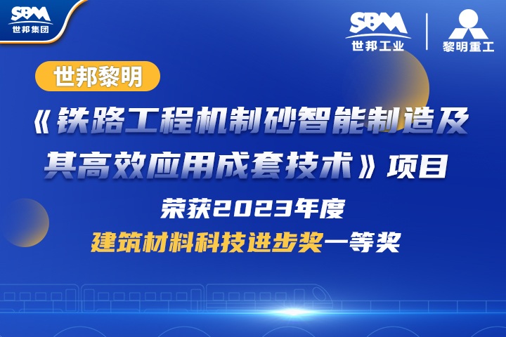 世邦黎明《鐵路工程機(jī)制砂智能制造及其高效應(yīng)用成套技術(shù)》項目 榮獲2023年度建筑材料科技進(jìn)步獎一等獎