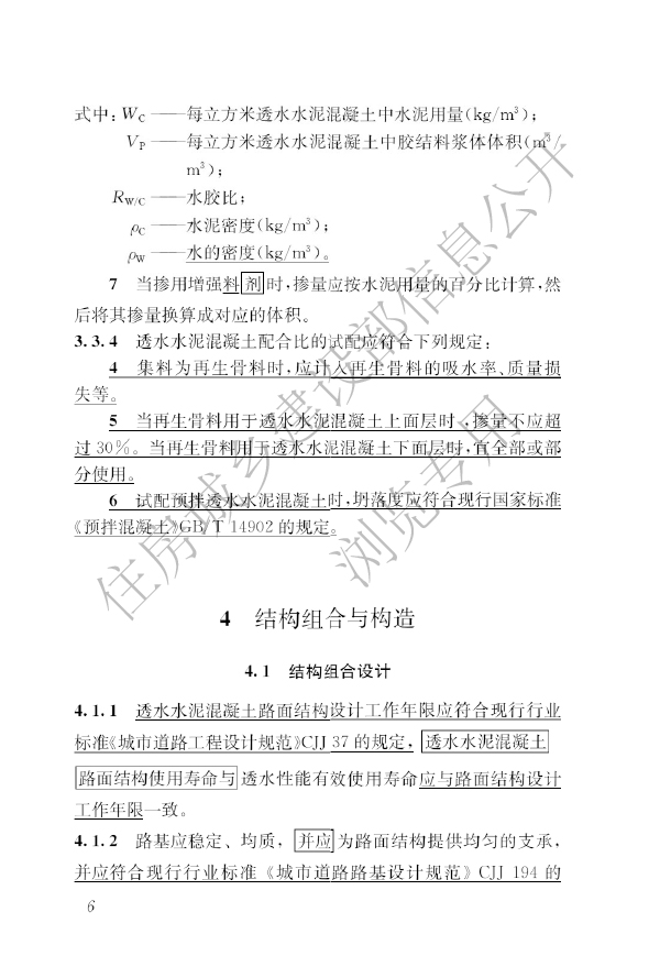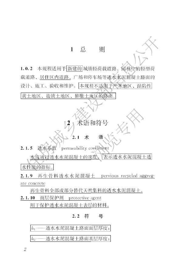 本規(guī)程適用于新建的城鎮(zhèn)輕荷載道路、園林中的輕型荷載道路、居住區(qū)內(nèi)道路、廣場和停車場等透水水泥混凝土路面的設計、施工、驗收和維護。本規(guī)程不適用于嚴寒地區(qū)、濕陷性黃土地區(qū)、鹽漬土地區(qū)、膨脹土地區(qū)的路面。