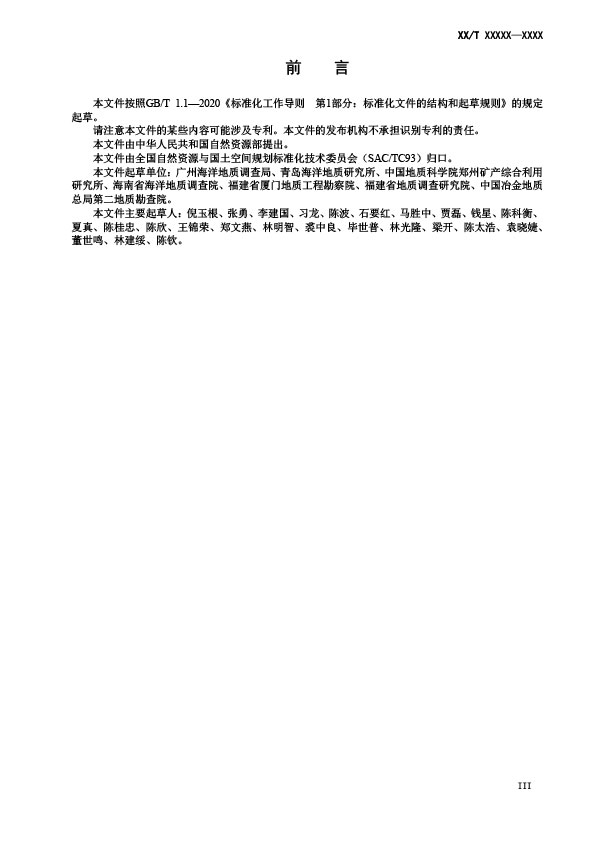 本文件規(guī)定了海砂礦產(chǎn)地質(zhì)勘査目的及勘査階段、勘査工作程度、綠色勘査要求、勘查工作及其質(zhì)可行性評價、資源儲量估算等要求。本文件適用于海砂礦產(chǎn)地質(zhì)勘查工作及成果評價等。