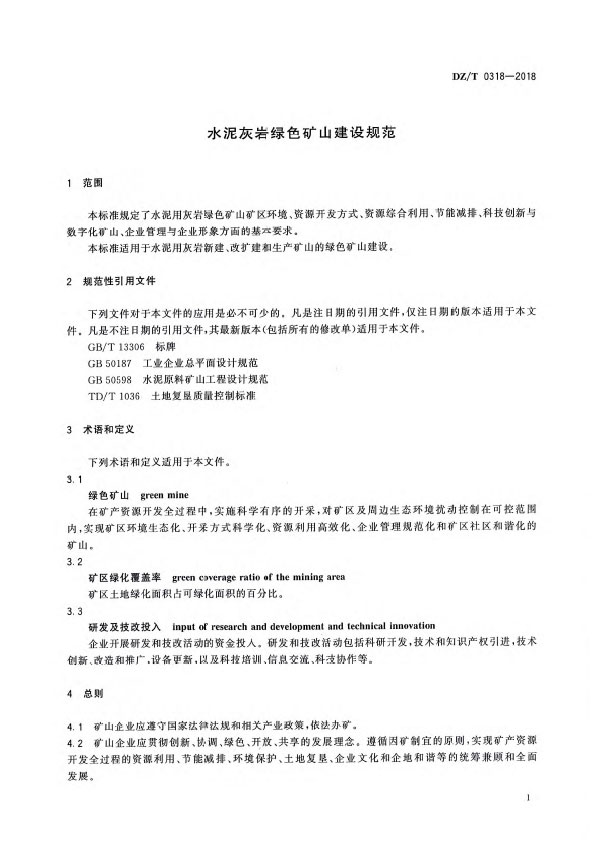 本標(biāo)準(zhǔn)規(guī)定了水泥用灰?guī)r綠色礦山礦區(qū)環(huán)境,資源開(kāi)發(fā)方式、資源綜合利用、節(jié)能誠(chéng)排、科技創(chuàng)新與數(shù)字化礦山、企業(yè)管理與企業(yè)形象方面的基本要求。本標(biāo)準(zhǔn)適用于水泥用灰?guī)r新建、改擴(kuò)建和生產(chǎn)礦山的綠色礦山建設(shè)。