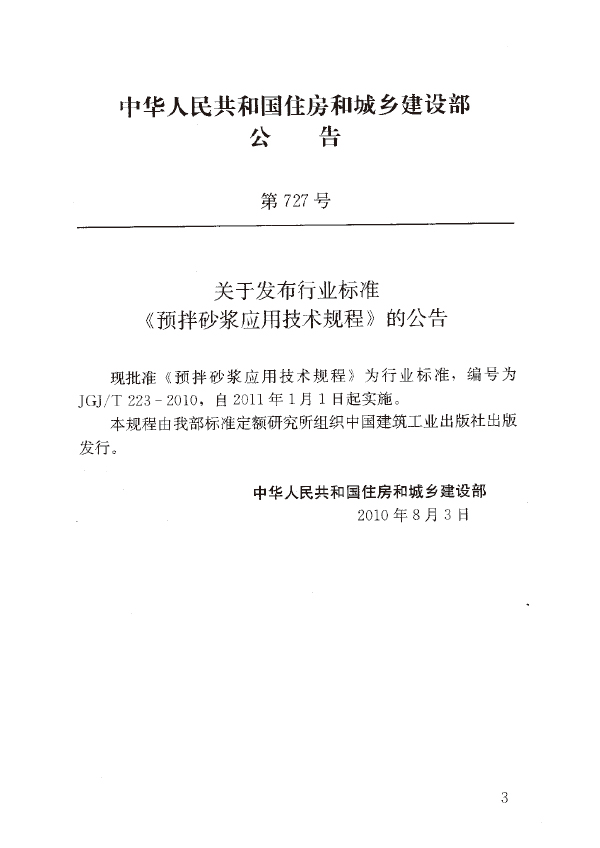 本規(guī)程規(guī)定了預(yù)拌砂漿的定義,分類、標(biāo)記、技術(shù)要求,試驗(yàn)方法、檢驗(yàn)規(guī)則及訂貨與交貨。本規(guī)程適用于預(yù)拌砂漿的生產(chǎn)質(zhì)量控制,采用預(yù)拌砂漿的一般工業(yè)與民用建筑物的砌筑、抹灰,地面(屋面)工程和裝飾裝修工程的施工質(zhì)量控制和驗(yàn)收。
