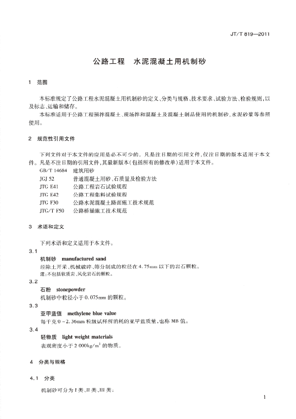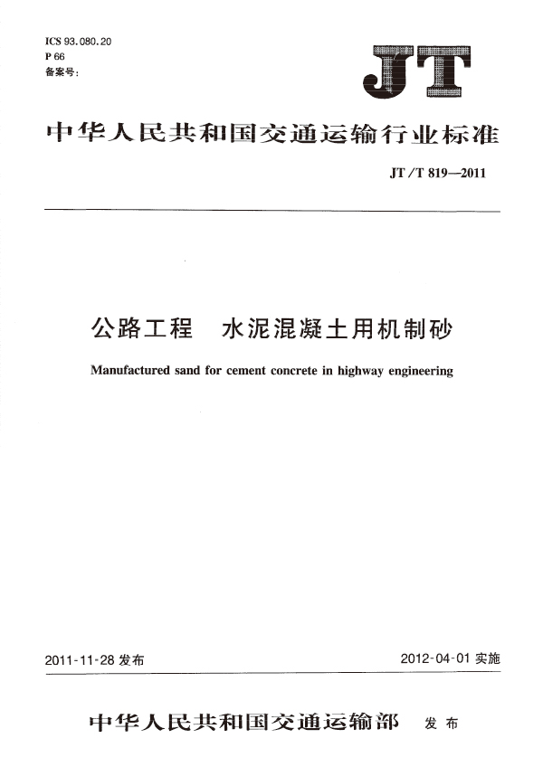 本標準規(guī)定了公路工程水泥混凝土用機制砂的定義、分類與規(guī)格、技術(shù)要求、試驗方法、檢驗規(guī)則,以及標志、運輸和儲存。本標準適用干公路工程頂拌混凝土、現(xiàn)場拌和混凝土及混凝土制品使用的機制砂,水泥砂漿等參照使用。