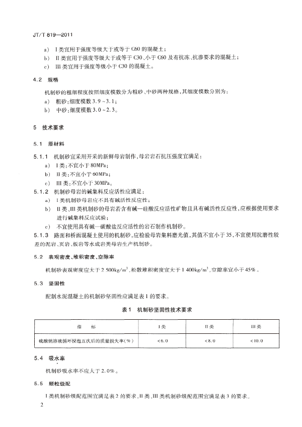 公路工程、水泥混凝土用機制砂