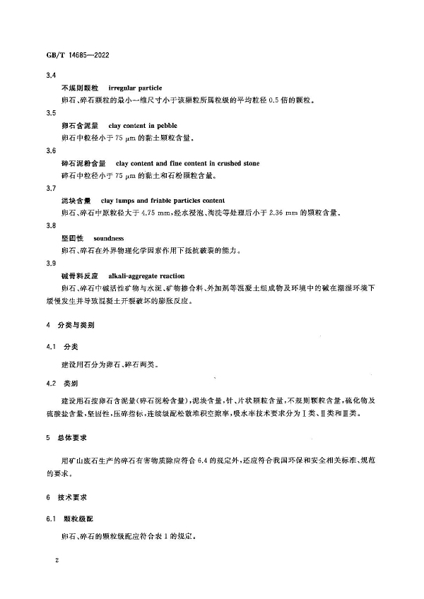 建筑用石料的生產(chǎn)不僅會影響自然環(huán)境,還影響工程建設(shè)質(zhì)量。隨著工程建筑對石料的消耗不斷增加,石料的來源趨于復(fù)雜,同時隨著工程技術(shù)的進步,對混凝土質(zhì)量要求提高,對石料的質(zhì)量要求也不斷提高。本標準適用于建設(shè)工程中水泥混凝土及其制品用卵石、碎石。